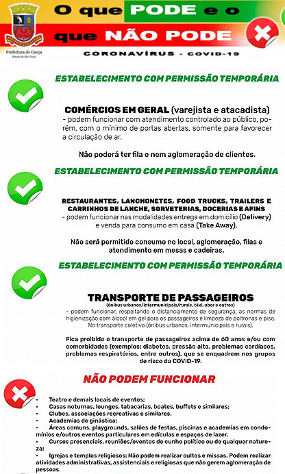 De acordo com o prefeito de Garça, a medida tem como objetivo reconhecer a necessidade de preservar a economia em paralelo as necessidades da saúde.