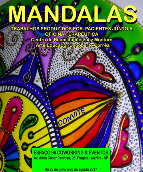 Pacientes da Oficina Terapêutica do Centro de Reabilitação Lucy Montoro de Marília expõem, no Espaço 96 Eventos, 12 painéis com o tema “Mandalas”, que integram a produção do 1º semestre do ano, sob a orientação do artista plástico e docente da Famema, Professor Dagoberto Corrêa. A mostra prossegue até 20 de agosto.
