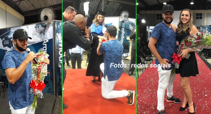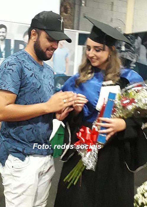 Namorada estava se formando na Faip em Marília, neste fim de semana, quando foi surpreendida com o convite. Iniciativa emocionou a todos os presentes na solenidade.