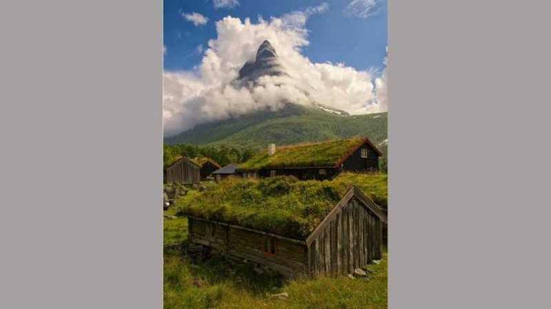 Celeiro em Valldal. Localizado a 30 km das fiordes de Trollstigen, Valldal é um vale fértil, cercado pelos Alpes.