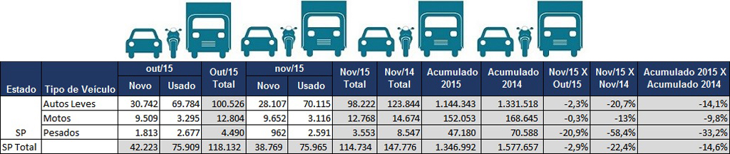 No mês foram financiados 98.222 automóveis leves novos e usados em São Paulo. Já as motos foram responsáveis por 12.768 vendas a crédito, enquanto os pesados responderam por 3.553 unidades.