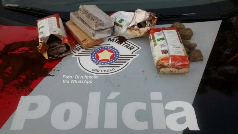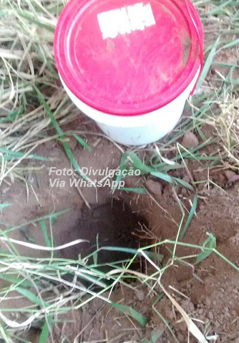 Os traficantes tinham feito um buraco e enterrado o entorpecente dentro de uma vasilha de plástico. Além disso, os cinco tabletes grandes de maconha estavam dentro de embalagens de café, o que teoricamente iria dificultar a localização pelos cães farejadores.