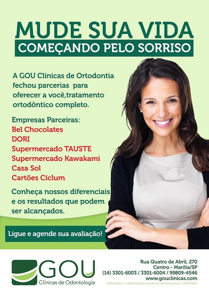 A Unidade da GOU (Grupo Ortodôntico Unificado) em Marília está completando dois anos de atividades. Com uma equipe altamente capacitada e equipamentos modernos, proporciona aos seus clientes um sorriso perfeito.
