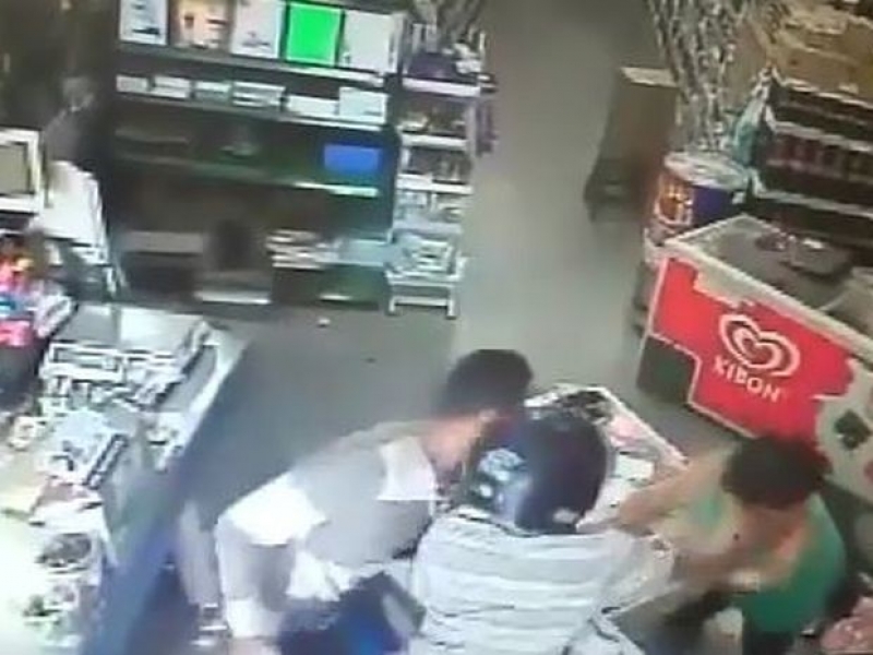 Uma funcionária do caixa do mercado tentou evitar a ação, mas apanhou dos ladrões com socos, empurrões e foi agredida também com capacete.