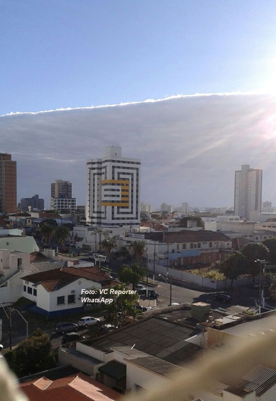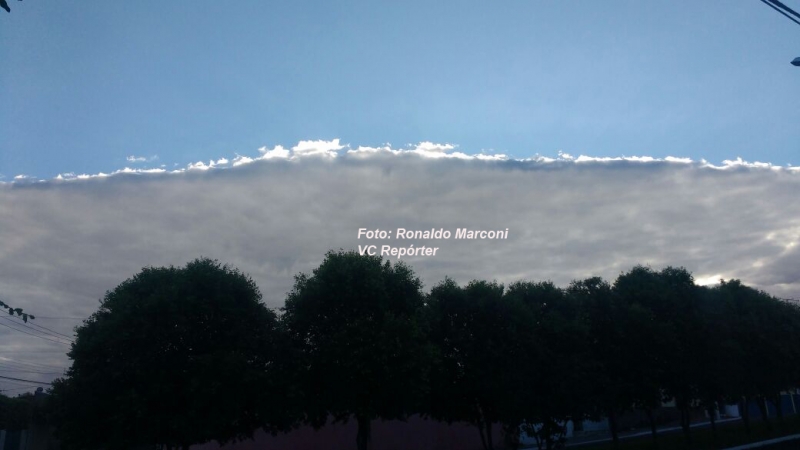 A aproximação de uma frente fria ao Estado de São Paulo proporcionou um fenômeno meteorológico em Marília nesta manhã de quarta-feira (06). Uma nuvem bastante espessa que chegou a cobrir quase a "metade" do ceu na cidade e também na região. Internautas enviaram fotos e até um vídeo mostrando essa curiosidade que durou algumas horas. Pouco depois das 10h a nuvem se dissipou.