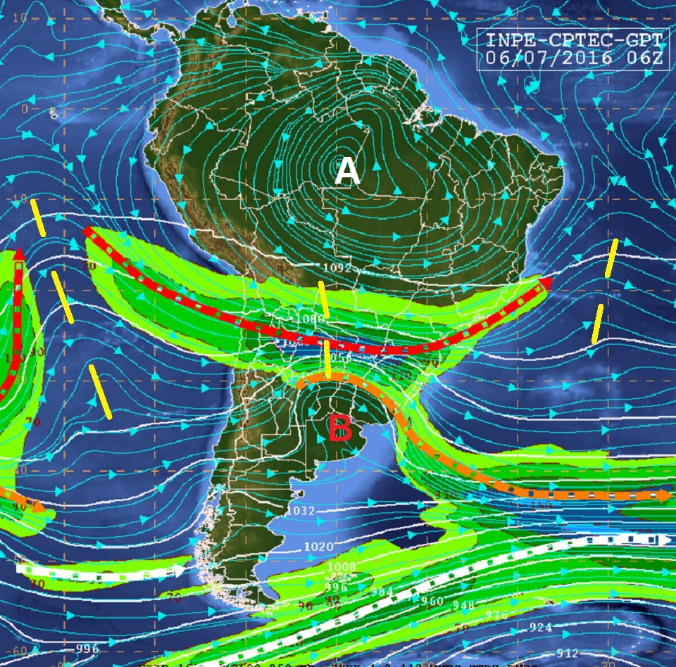 máximo de vento que escoa em altitude e quase sempre está relacionado com mudanças do tempo."