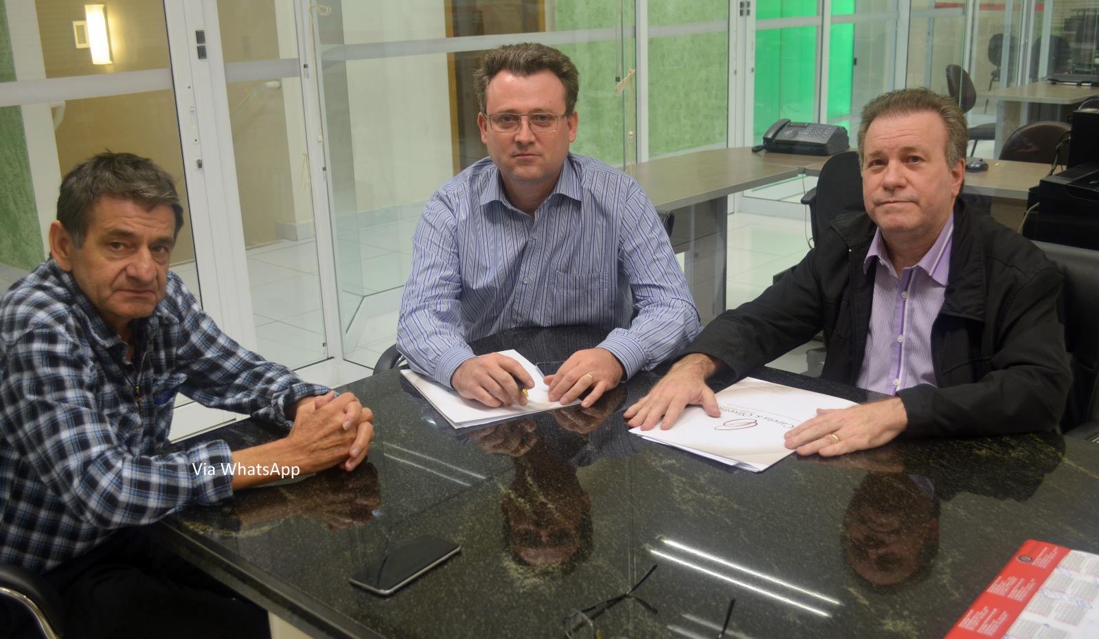 Luiz Carlos Lozio (direita) com o advogado da empresa, Adinaldo Aparecido de Oliveira;e o presidente em exercicio do Sindicato, Valdir Pasqual (esq.)