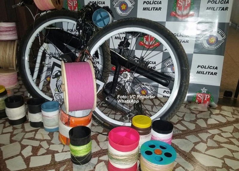 Policiais da 5ª Companhia da Polícia Militar apreenderam hoje (27), na zona Sul de Marília, pelo menos 19 carretéis com linha cortante que estavam sendo utilizados