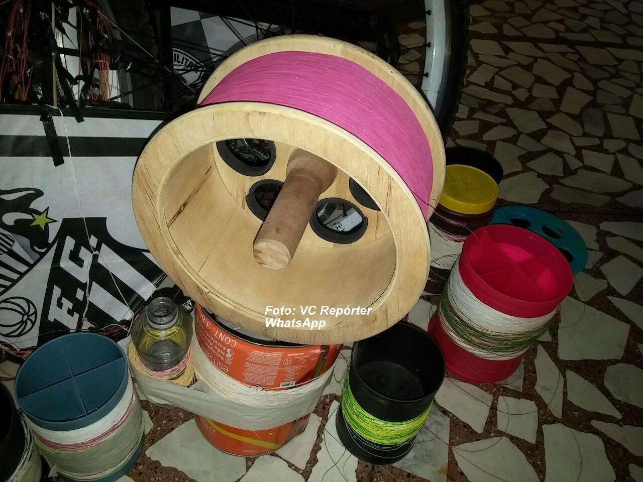 Carretéis com linha cortante que foram apreendidos.