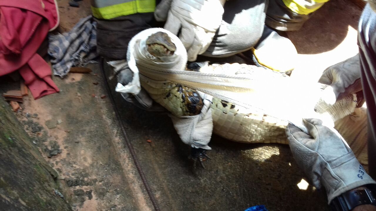 Os Bombeiros foram acionados pouco depois das 12h. Os componentes da viatura AT-10106 composta pelo sargento Telles, cabo Anderson e soldado William, foram até ao local e encontraram o animal (um filhote) que estava ao lado da residência, no quintal.