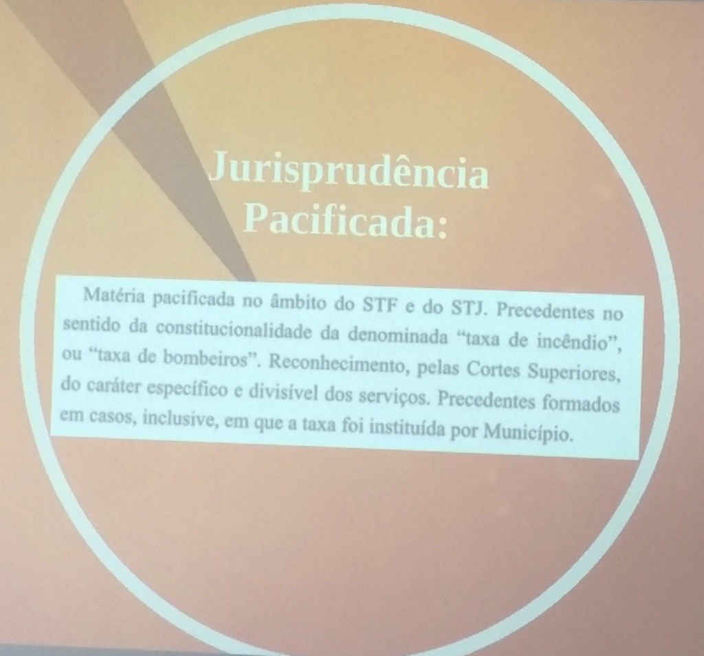 A cobrança da "Taxa de Bombeiros", pelo Corpo de Bombeiros, é considerada legal com base em vários julgamentos ocorridos no STF e STF sobre o assunto e se houver a sua retirada o maior risco recai sobre a própria população, já que o valor arrecadado é revertido diretamente na aquisição de equipamentos, viaturas e a próxima etapa será a construção de uma nova sede na zona Sul para garantir um atendimento mais rápido às ocorrências.