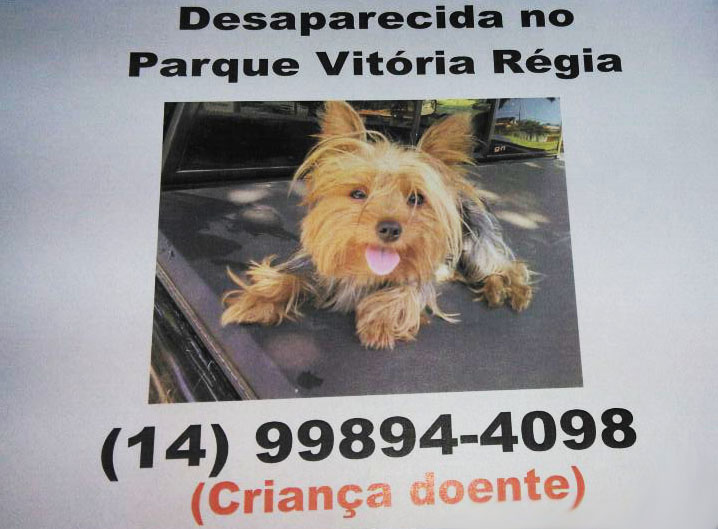 Bauru. O motivo é que o animalzinho provavelmente foi furtado durante a festa de aniversário naquela cidade, no Parque Vitória Régia.
