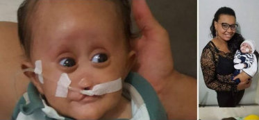 O bebê Joaquim: nasceu com Holoprosencefalia Alobar, que é um transtorno caracterizado pela ausência do desenvolvimento do prosencéfalo (o lóbulo frontal do cérebro do embrião), além de hidrocefalia, lábio leporino e narina única.