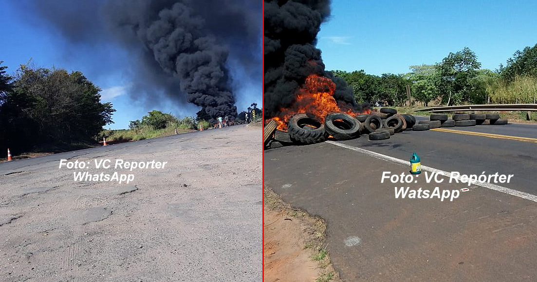 Bloqueio da rodovia BR-153, próximo a Ocauçu.