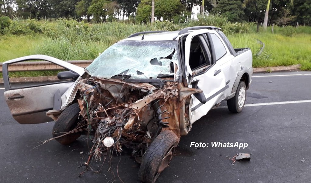 De acordo com as primeiras informações, o motorista do utilitário Strada teria perdido o controle e o veículo invadiu a pista contrária, chocando-se violentamente contra a Hylux que, por sua vez, foi parar do outro lado, bem após a pista.