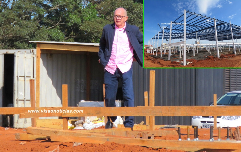 Diretor de expansão da empresa, Nilton Hang, vistoria obras e revela: há sete anos "namorava" área escolhida. Inauguração prevista para agosto poderá ser antecipada.