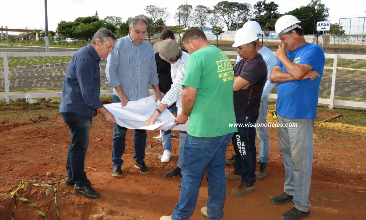 Nilton Hang com lideranças marilienses durante visita de inspeção às obras.