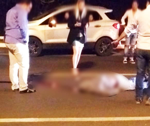 Logo após a primeira rotatória da avenida perdeu o controle e a motocicleta tombou, sendo arrastada por vários metros.