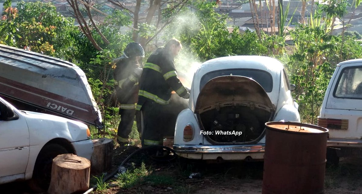 Por volta das 5h de ontem, equipe do Corpo de Bombeiros foi acionada para combater o incêndio que atingiu um Gol, estacionado em via pública.