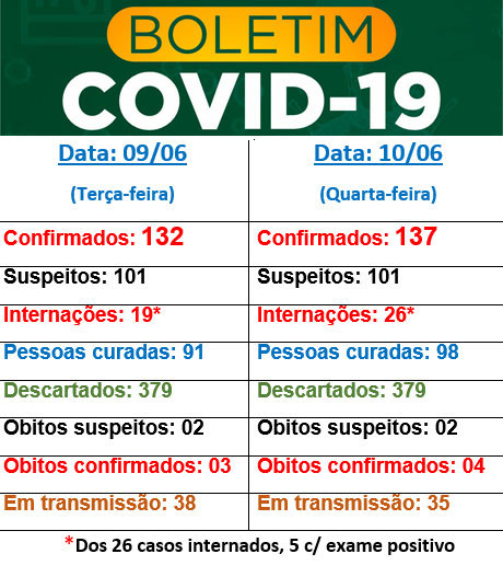 A maior preocupação também é quanto a ocupação de leitos hospitalares. Ontem eram 19 e hoje já são 26 pacientes em hospitais, sendo cinco deles com diagnóstico confirmado e os demais aguardando resultados.