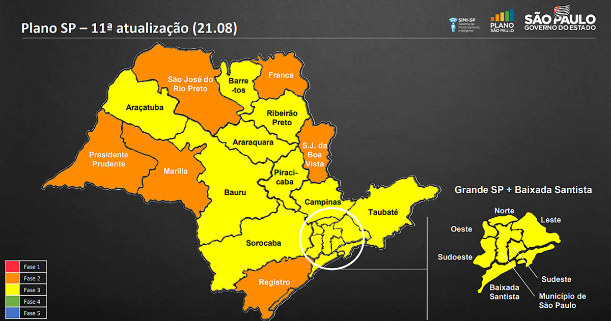 Marília volta à fase laranja ao lado de regiões como Prudente e Rio Preto.