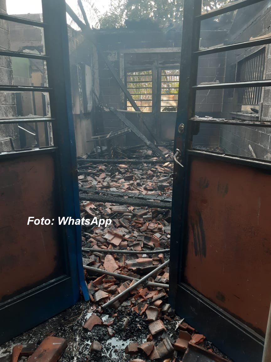 A equipe do Corpo de Bombeiros foi mobilizada na manhã desta terça-feira (06) para combater um incêndio que destruiu toda a ala administrativa da Escola Estadual Emico Matsumoto Geografa localizada na rua Angelina Balco da Silva, bairro Nova Marília, zona sul da cidade.