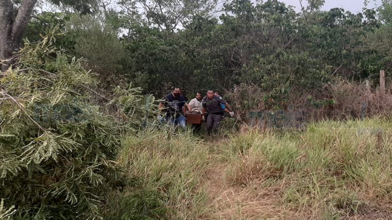 Corpo da moça, em avançado estado de decomposição, é retirado do riacho.