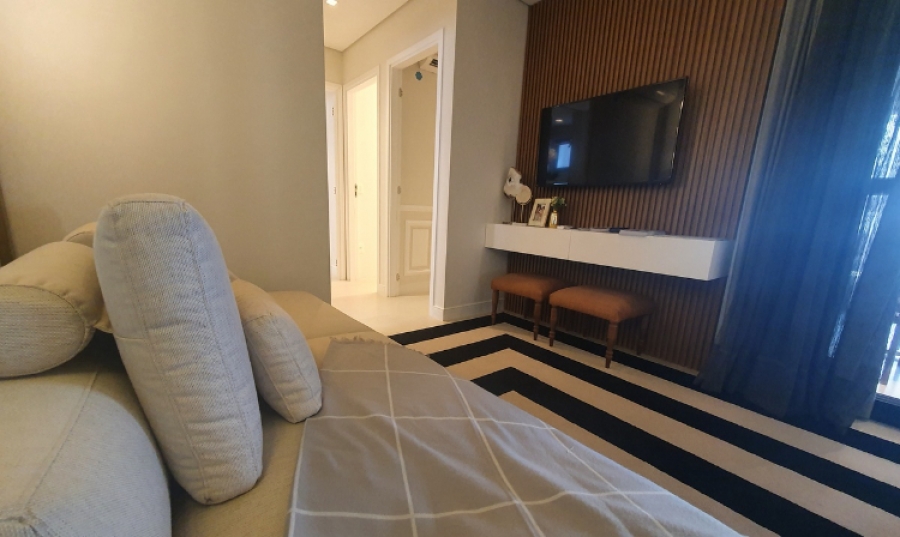 Os apartamentos, 81,39 m2 de área útil e duas vagas de garagem cobertas, têm previsão para instalação de ar condicionado nos dormitórios e sala de estar.
