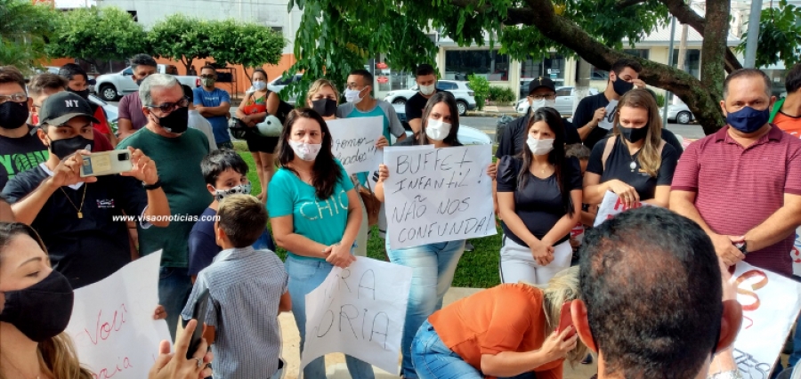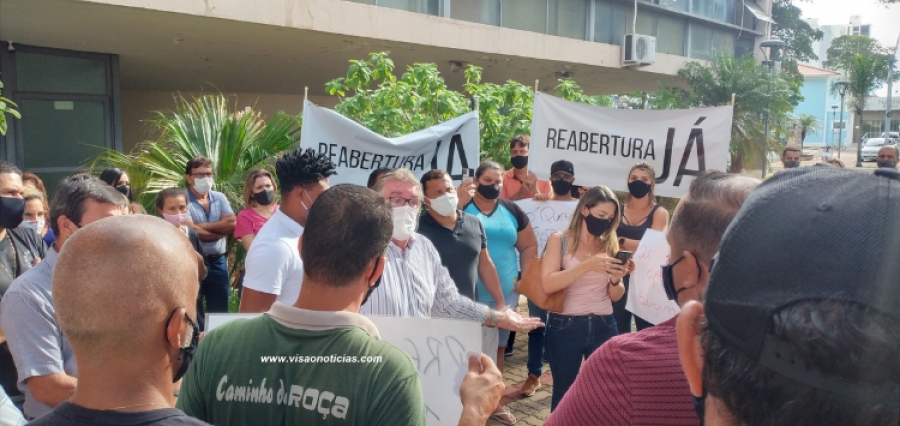 A manifestação reuniu representantes de diferentes segmentos, como salões de beleza, barbearias, bares e restaurantes, academias, buffets e também dos lojistas, ou seja, todos aqueles que estão proibidos de fazer o atendimento presencial. Eles cobravam do prefeito Daniel Alonso uma atitude mais enérgica junto ao governo do Estado para conseguir a reabertura do comércio.