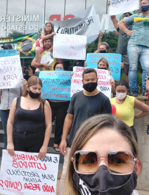 No protesto desta manhã participaram representantes dos seguimentos do comércio varejista, bares, restaurantes, academias, salões de beleza e estética.