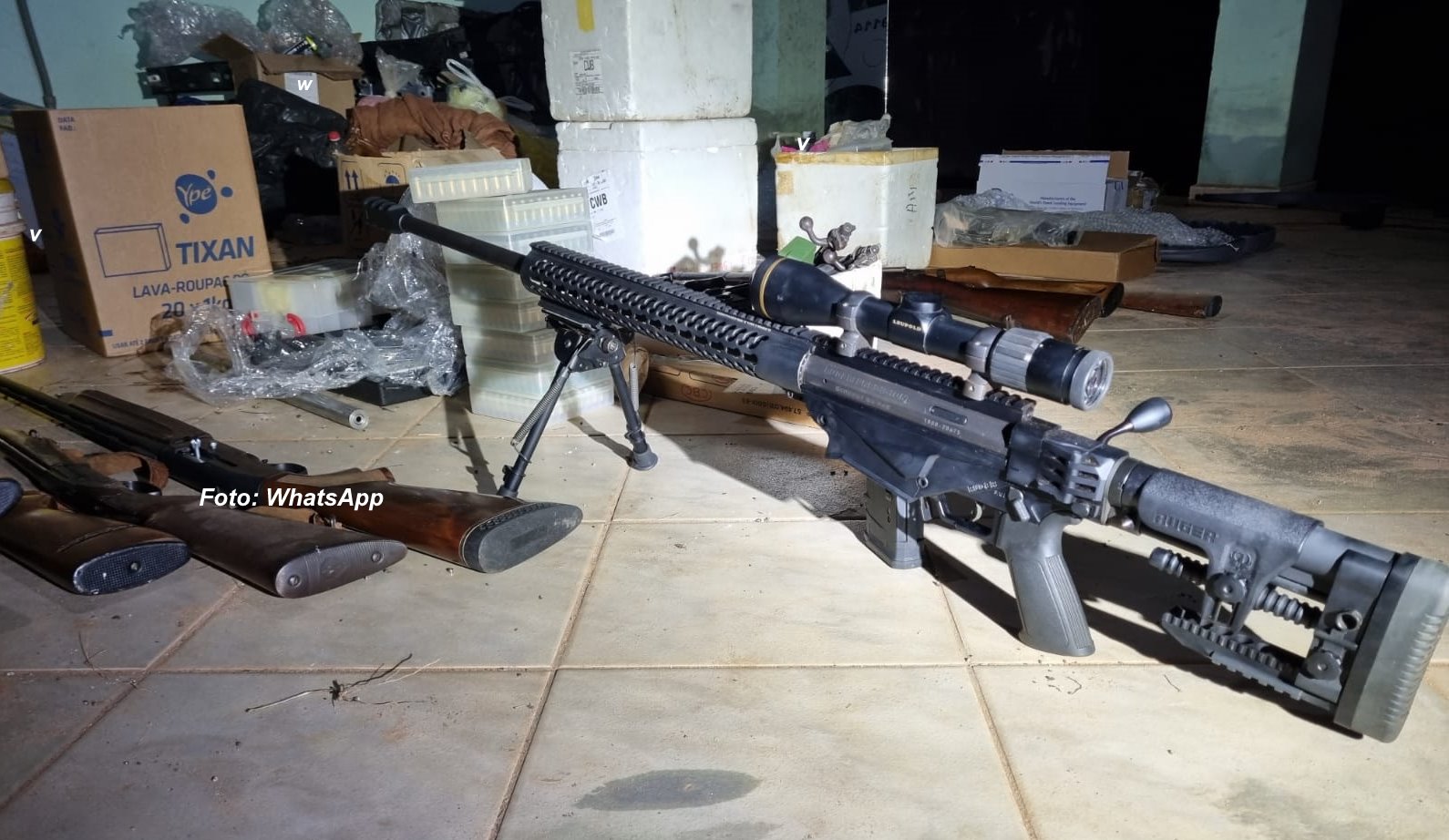 Na noite anterior da apresentação do suspeito na delegacia, a Polícia Civil de Marília apreendeu na casa do coronel um verdadeiro arsenal, entre armas e munições, incluindo espingardas e um fuzil 762 de uso exclusivo das Forças Armadas.