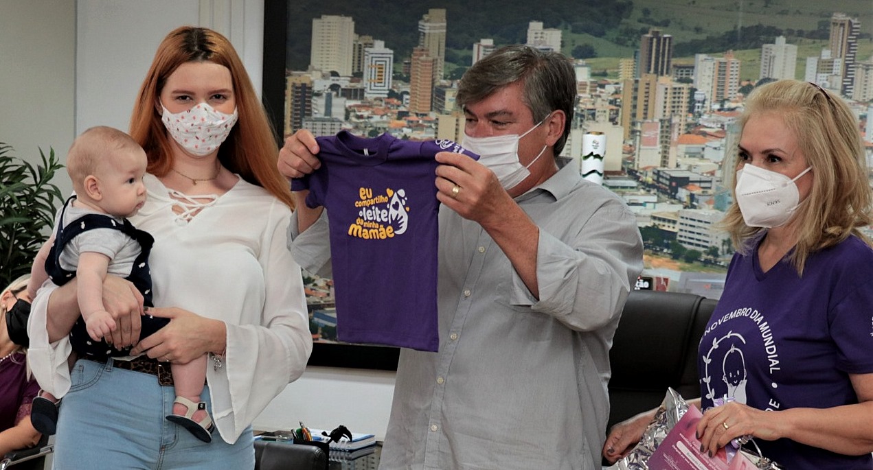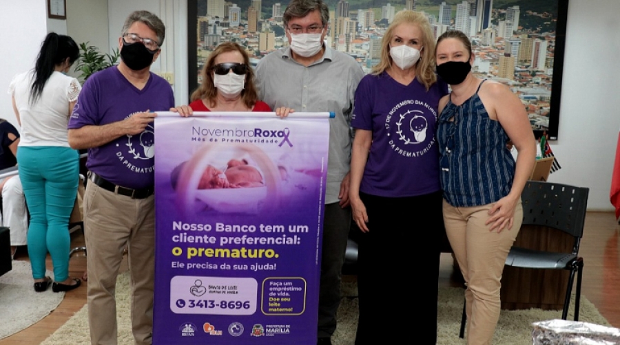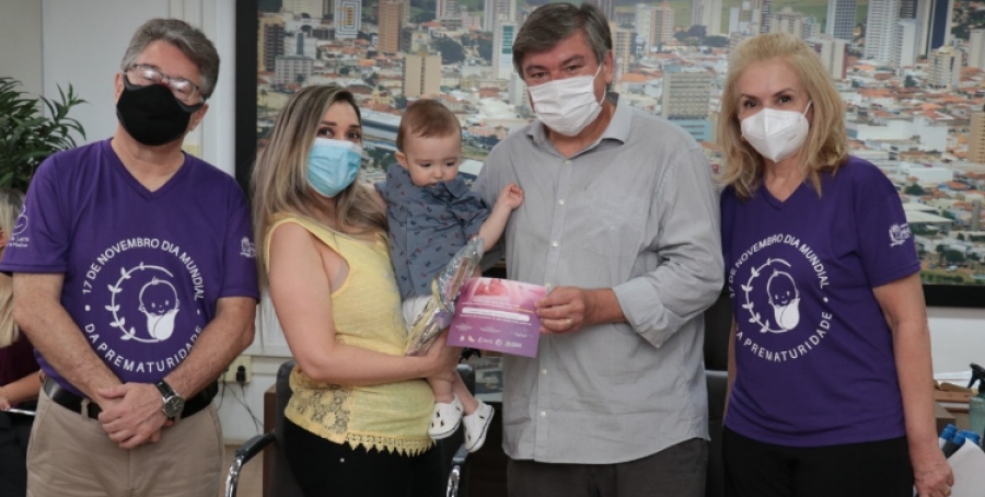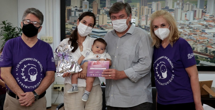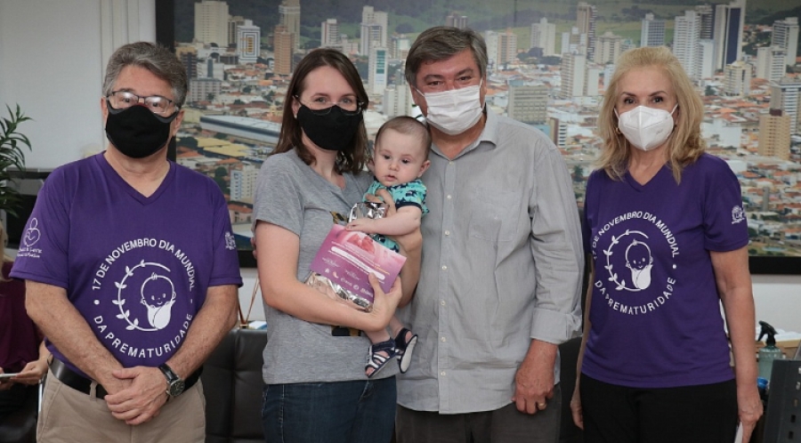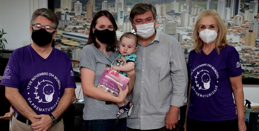 O evento, realizado no gabinete da Prefeitura, integra a Campanha Novembro Roxo e reuniu também as mães desses bebês, representantes dos hospitais Santa Casa, Gota de Leite, Unimar e Materno-Infantil, além de toda a equipe do BLH, coordenada pela enfermeira Sandra Domingues.