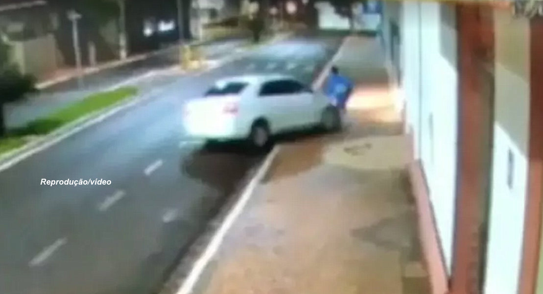Uma câmera de segurança flagrou o atropelamento na Avenida Tiradentes. Nas imagens, é possível ver o momento em que o carro atinge o homem, que é arremessado.