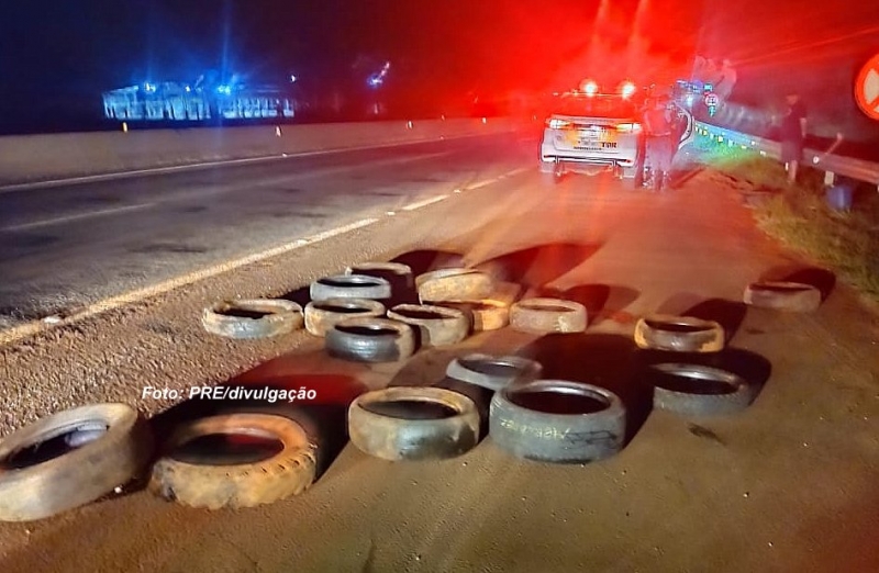 Já na rodovia Raposo Tavares, ontem à noite, em Ourinhos, um grupo de pessoas tentou bloquear s duas pistas usando pneus e óleo diesel.