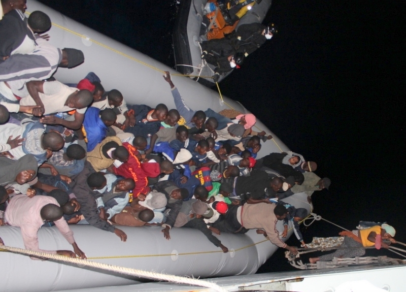O navio "Viana do Castelo", das Forças Armadas Portuguesas, resgatou 89 imigrantes que estavam à deriva num bote de borracha a 44 milhas da Líbia.
