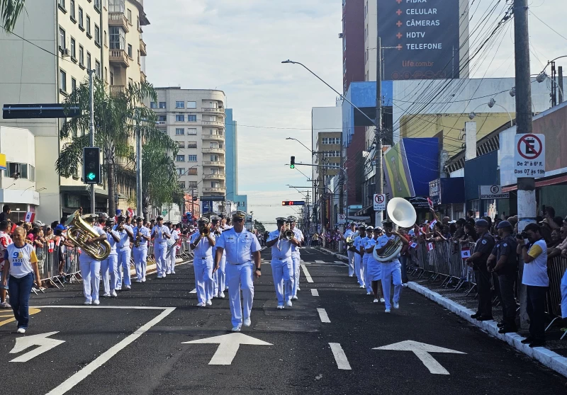 A avenida Sampaio Vidal ficou lotada para o desfile cívico-militar em comemoração aos 96 anos da cidade que começou com uma surpresa: uma das aeronaves da Esquadrilha da Fumaça chegou mais cedo à cidade e fez uma "passagem" para o público que aplaudiu muito.