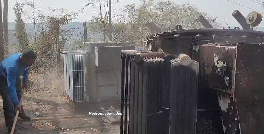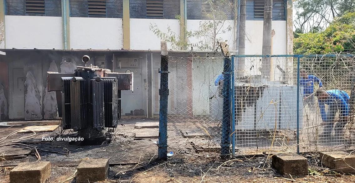 De acordo com nota distribuída pela Prefeitura, um incêndio (por motivos que ainda estão sendo apurados) resultou na explosão de transformadores (foto) e demais equipamentos elétricos responsáveis pela operação das bombas do segundo recalque do sistema de captação de água da estação de tratamento do Rio do Peixe.