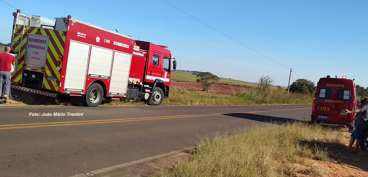 Nas proximidades do bairro Santa Terezinha, em uma curva. já no município de Tupã, por motivos a serem apurados, o condutor perdeu o controle de direção vindo a tombar caminhão a sua direita de direção.