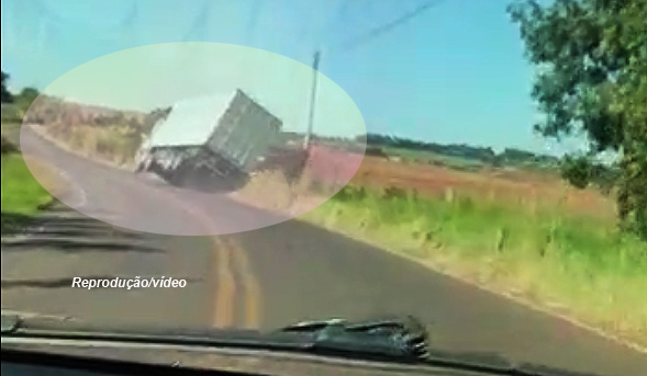 Momento em que o caminhão tomba numa curva.