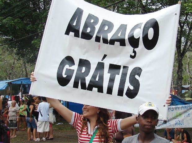 A Campanha dos Abraços Grátis é um movimento social que envolve pessoas oferecendo abraços para estranhos em locais públicos.