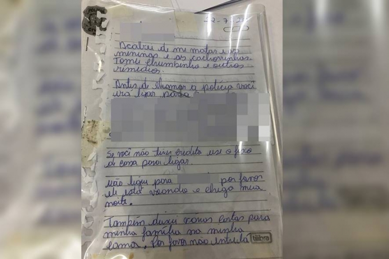 Na residência, foi encontrada uma carta de despedida, onde a mulher teria dito que mataria as filhas e os cachorros da casa e dava orientações a serem seguidas por familiares dela, após o crime.