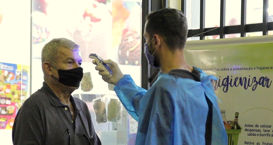 Acadêmicos e docentes dos cursos de Enfermagem, Nutrição e Educação Física da Universidade de Marília (Unimar), em parceria com a Secretaria Municipal de Saúde, realizam barreira sanitária no Terminal Rodoviário, com aferição de temperatura, questionamento sobre sintomas da Covid-19 e orientação nutricional e de higienização de alimentos e embalagens. A ação acontece diariamente das 08h às 22h.