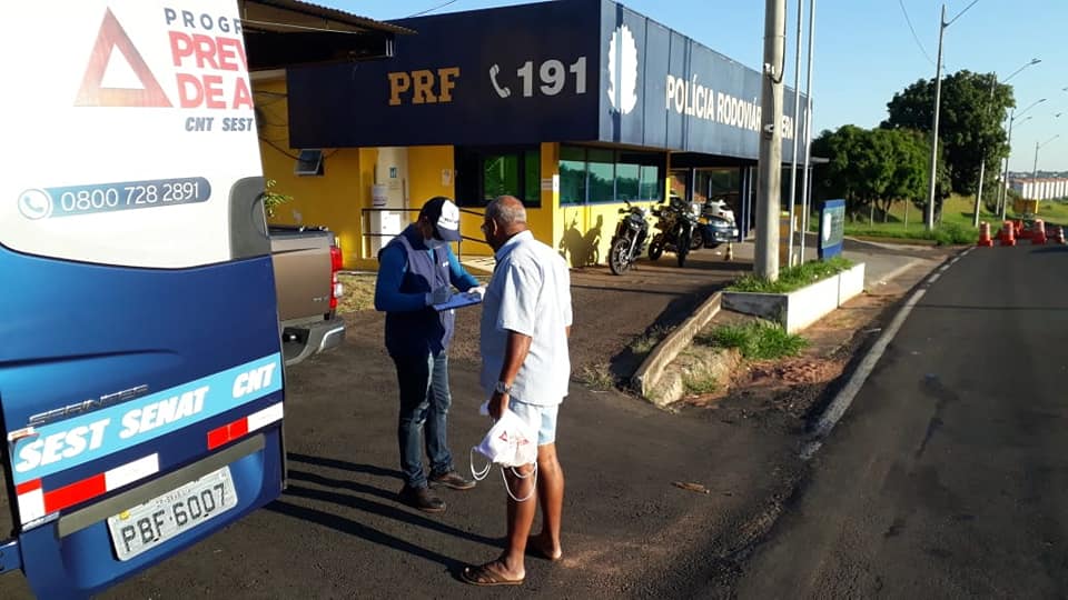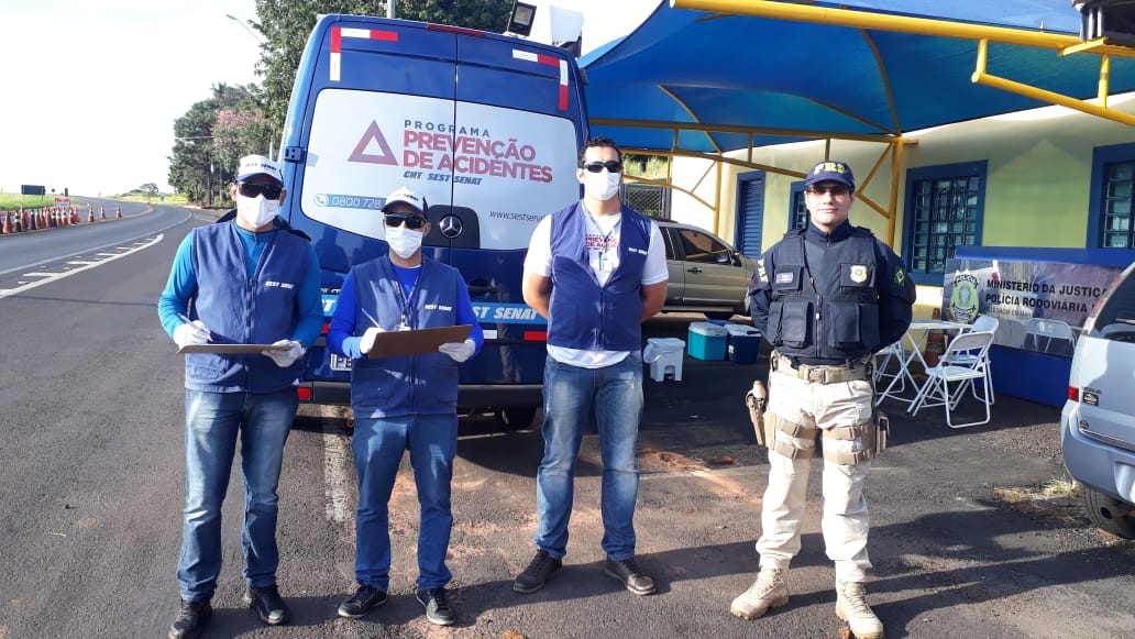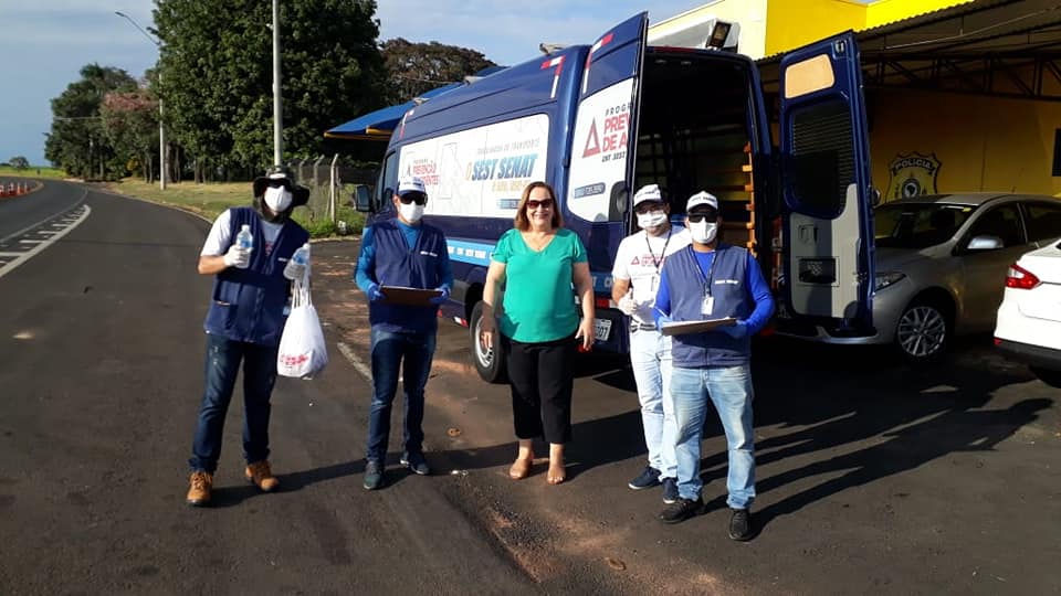 Em Marília equipes do SEST SENAT contam com o apoio da Policia Rodoviária Federal (PRF) na distribuição dos kits e orientações aos motoristas que transitam pela rodovia BR-153 (rodovia Transbrasiliana).