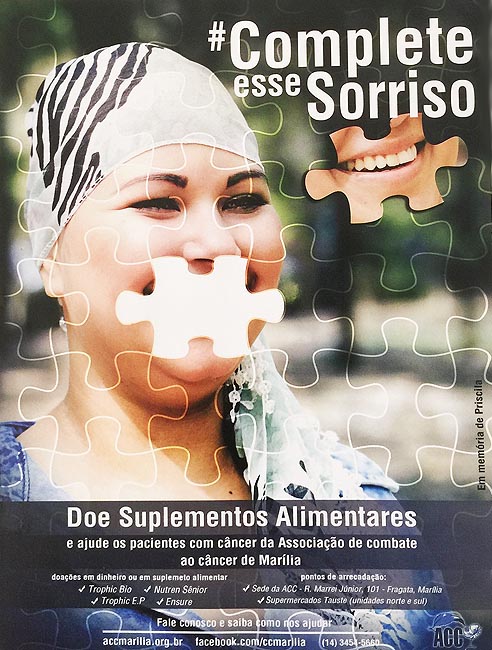 Combate ao Câncer) de Marília anunciou a realização da campanha "Complete Esse Sorriso. Suplemento é Vida".