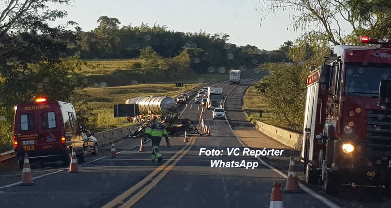 A Polícia Rodoviária Federal (PRF)está liberando dentro de mais alguns minutos a rodovia Transbrasiliana que ficou parcialmente interditada parcialmente por cerca de seis horas, próximo a Marília, em virtude de um grave acidente envolvendo uma carreta tanque que por muito pouco não caiu no rio existente no local.