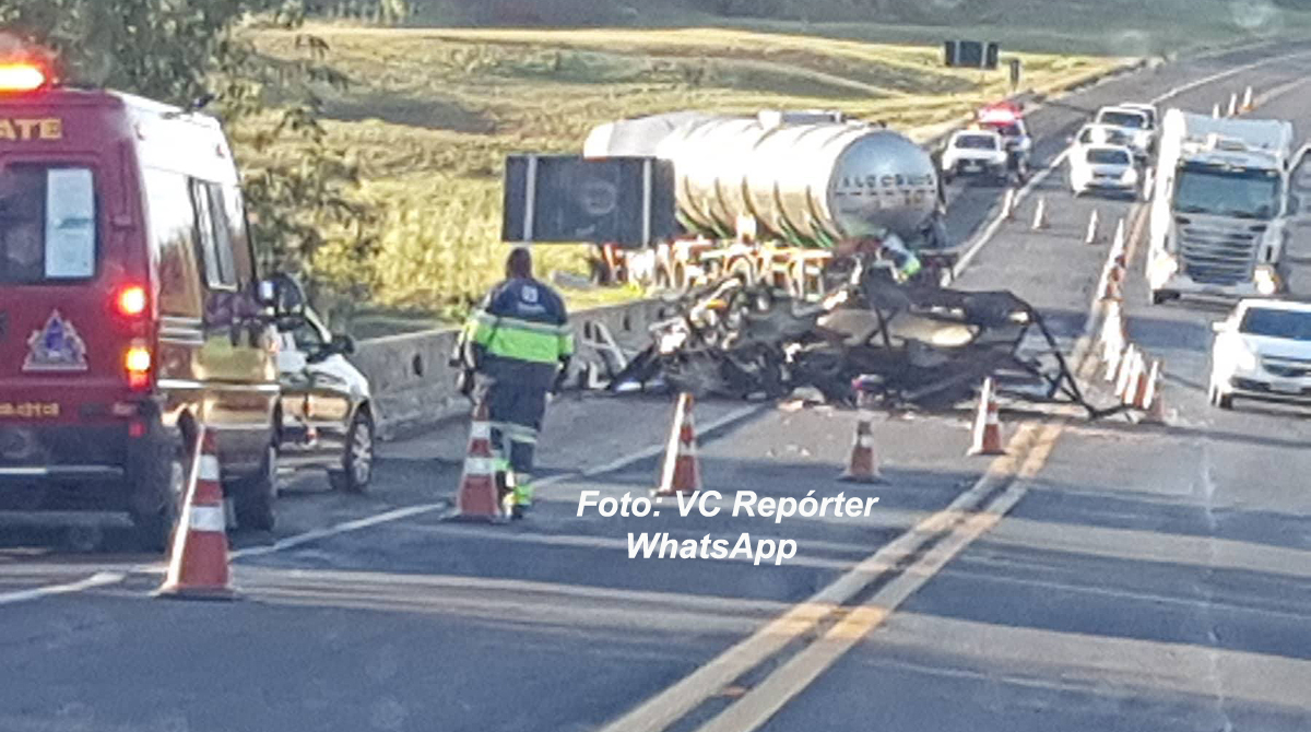 O acidente ocorreu por volta das 15h30, na altura do quilômetro 215, na ponte sobre o rio Pádua Sales, na divida entre os municípios de Marília e Guaimbê. Por motivos que ainda estão sendo apurados, a carreta que transportava álcool bateu em um outro veículo que transportava uma carretinha e, com o impacto, ficou praticamente destruído.