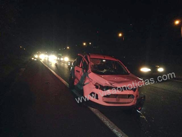 Acidente agora a pouco na rodovia do contorno, entre o Campus Universitário e Hospital das Clínicas. Carro Eco Sport com placas de Marília perdeu o controle e chocou-se contra a mureta central e em seguida contra um caminhão.