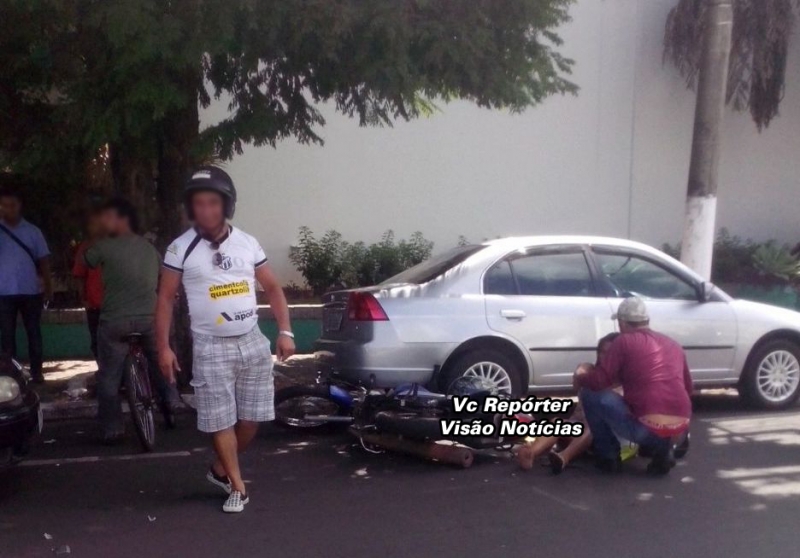Mototaxista e passageira ficaram feridos após colisão com carro