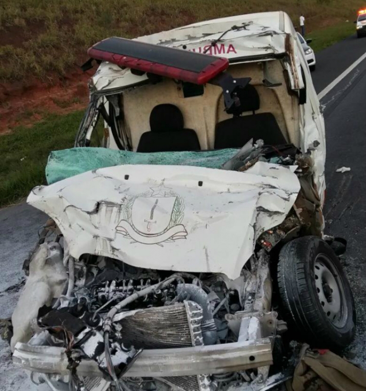 A ambulância ficou totalmente destruída e chegou a ter um princípio de incêndio, que foi apagado com a ajuda de extintores.
