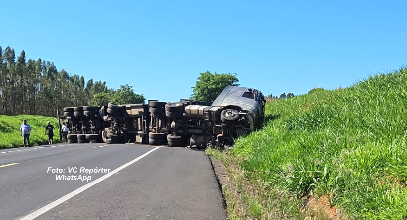 Interdição da rodovia - Com a violenta colisão, uma das carretas tombou e ficou atravessada na pista, o mesmo acontecendo com o caminhão. Até o começo da noite o trânsito ainda continuava bastante complicado, com o sistema "siga e pare", o que está provocando um grande congestionamento.